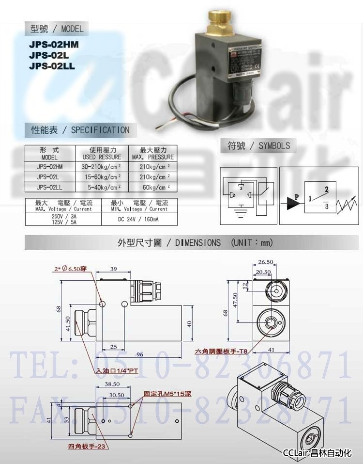 詳細(xì)信息 JPS-02HM,JPS-02L,JPS-02LL,壓力開(kāi)閥