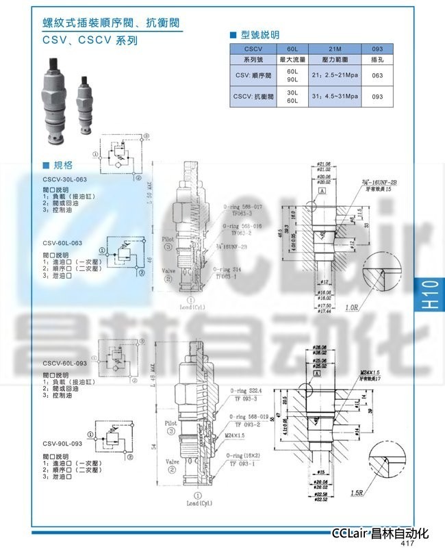 CSCV-30L-063,CSV-60L-063,CSCV-60L-093,CSV-90L-093,螺紋式插裝順序閥