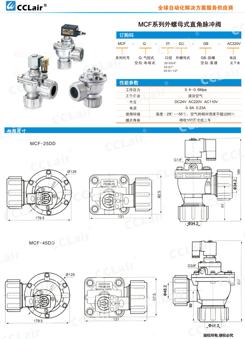 MCF-20DD,MCF-25DD,MCF-45DD,外螺母式直角脈沖閥