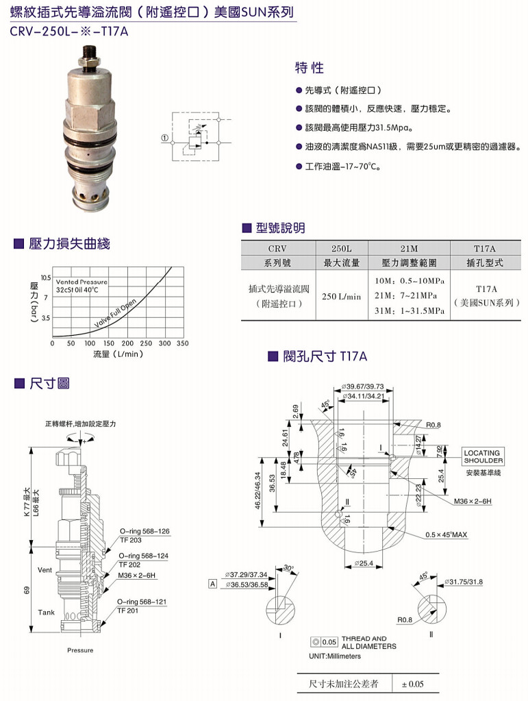 CRV-250L-10M-T17A,CRV-250L-21M-T17A,CRV-250L-31M-T17A,螺紋插式先導(dǎo)溢流閥