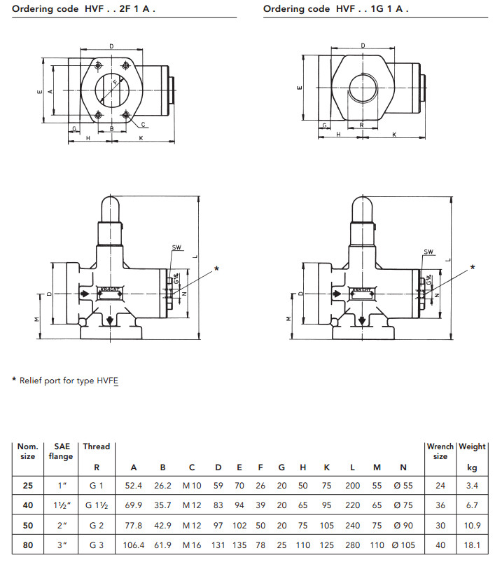 HVFME25A2F,HVFME40C2F,HVFME50A1G,HVFE50A1G,HVFE80C1G, kracht泄壓閥 |