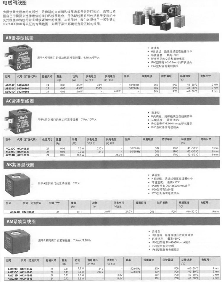 詳細信息 AB024C,AB230C,AB024D,AC230C,AC024C,AC024D,AK024D,AM024C,AM230C,電磁閥線圈