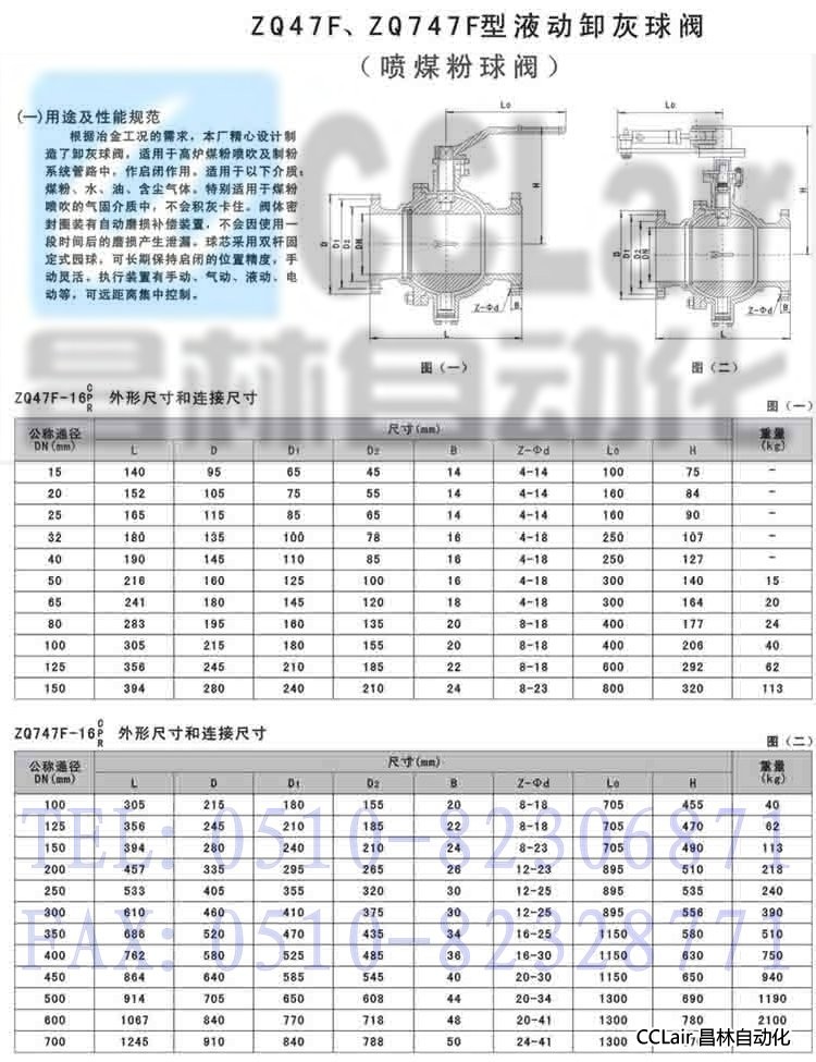 ZQ47F-16C,ZQ47F-16P,ZQ47F-16R,ZQ747F-16C,ZQ747F-16P,ZQ747F-16R,液壓卸灰球閥