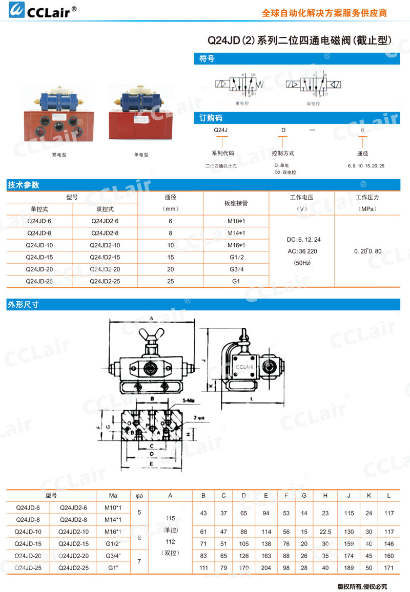 Q24JD-6,Q24JD-8,Q24JD-10,Q24JD-15,Q24JD-20,Q24JD2-15,Q24JD2-20,Q24JD2-25,二位四通電磁閥