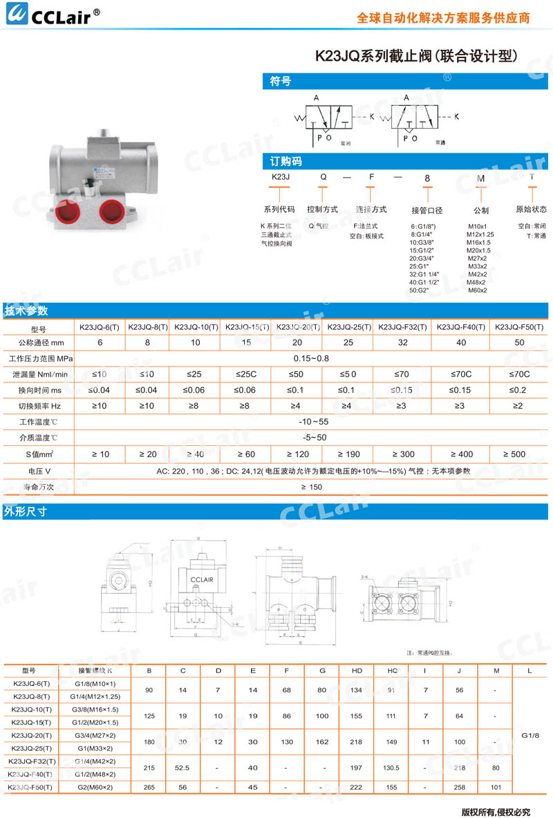 首頁(yè) > 產(chǎn)品&解決方案 > K23JQ-6,K23JQ-10,K23JQ-15,K23JQ-20T,K23JQ-25T,K23JQ-F32T,K23JQ-F40,K23JQ-F50,二位三通截止式氣控?fù)Q向閥