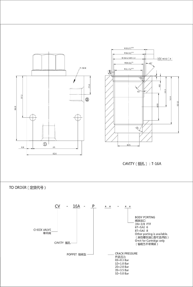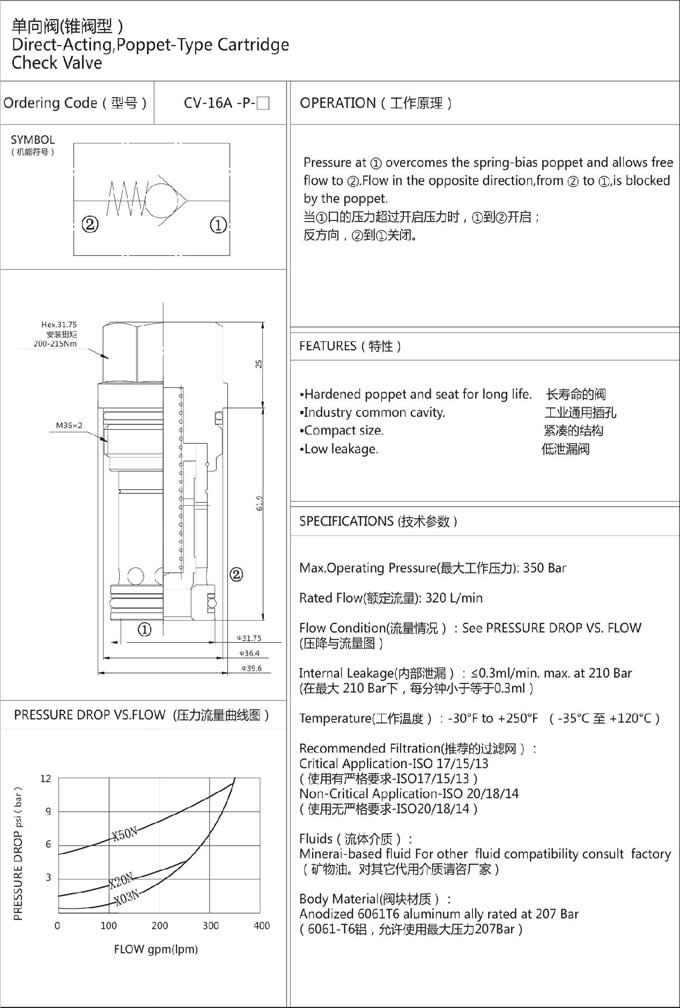 詳細信息 CV-16A-P-03,CV-16A-P-10,CV-16A-P-20,CV-16A-P-35,CV-16A-P-50,單向閥
