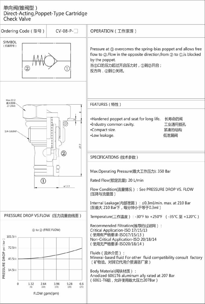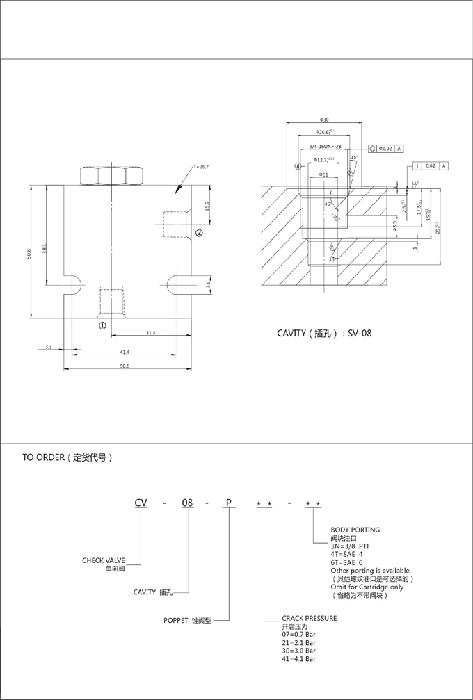 詳細信息 CV-08-P-07,CV-08-P-21,CV-08-P-30,CV-08-P-41,單向閥