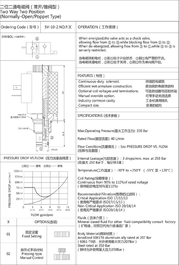 詳細信息 SV-10-2NOP,二位二通電磁閥
