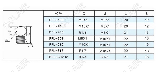 詳細(xì)信息 PPL-408,PPL-410,PPL-418,PPL-608,PPL-610,PPL-618,PPL-G1818,平面直角接頭