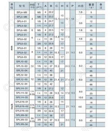 詳細(xì)信息 SPL4-M6,SPL6-M5,外牙直通快速接頭