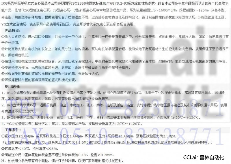 詳細(xì)信息 IRG32-200(I),IRG32-200A,IRG40-100,IRG40-100A,立式管道離心泵