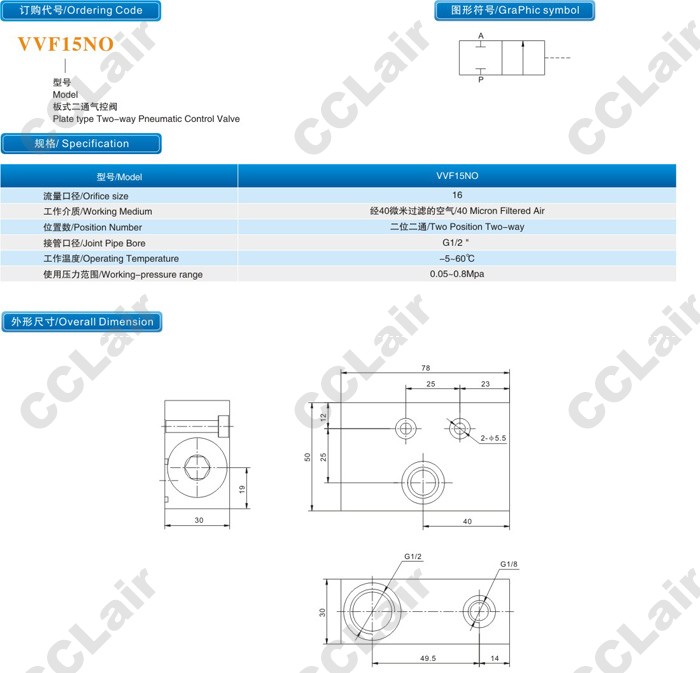 詳細(xì)信息 VVF15NO,板式二通氣控閥