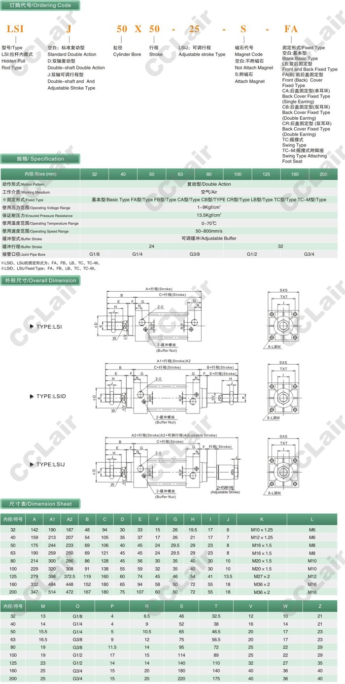 LSI32,LSI40,LSI50,LSI63,LSI80,LSI100,LSI125,LSI150,LSI200,LSI200×50,LSI50×50,標(biāo)準(zhǔn)氣缸 詳細(xì)信息 LSI32,LSI40,LSI50,LSI63,LSI80,LSI100,LSI125,LSI150,LSI200,LSI200×50,LSI50×50,標(biāo)準(zhǔn)氣缸