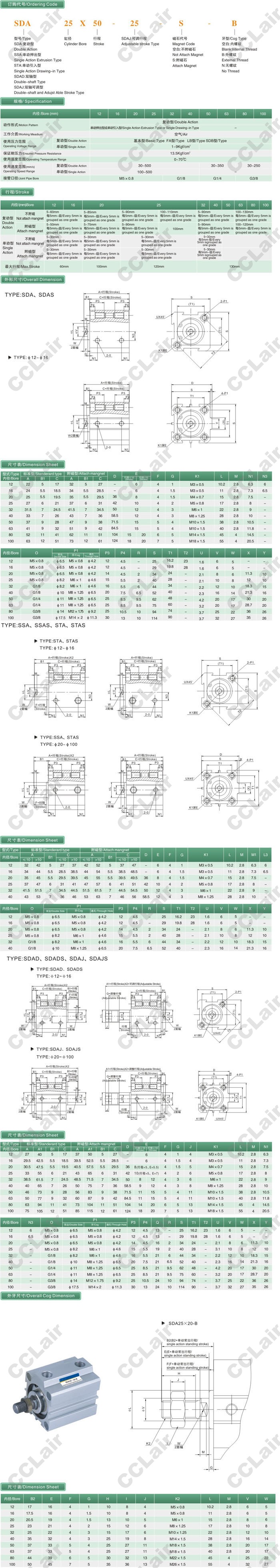 SDAD12×20,SDAD16×20,SDAD20×20,CCLair SDAD25×20,SDAD32×20,SDAD40×20,SDAD50×20,SDAD63×20,SDAD80×20,