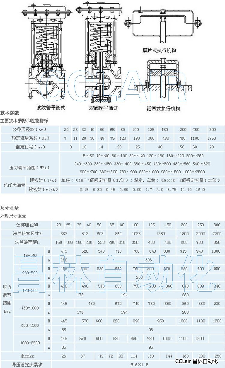 執(zhí)行機(jī)構(gòu) 薄膜式(設(shè)定值≤6bar)、活塞式(>6bar) |
