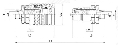 昌林液壓 | 國際標(biāo)準(zhǔn) | ØT | L1 | L2 | L3 | ØD | S1 | S2 | T | 母接頭編號 | 公接頭編號 |