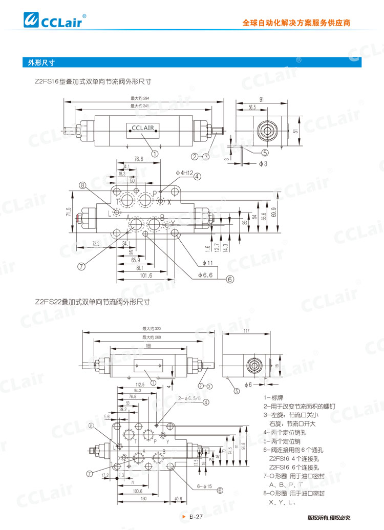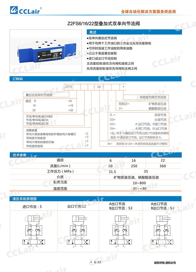 Z2FS6,Z2FS16,Z2FS22,Z2FS6-30/SV,Z2FS16-30/S3V,Z2FS22-30/S4,疊加式雙單向節(jié)流閥