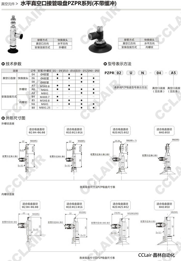 PZPR32U,PZPR40U,PZPR50U,PZPR20C,PZPR25C,PZPR32C,PZPR40C,PZPR50C,PZPR02B,接管吸盤
