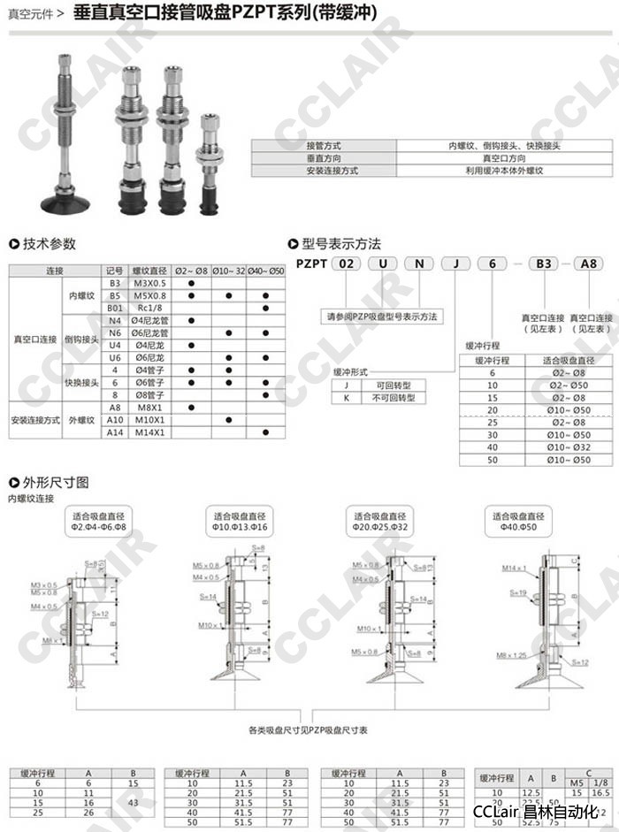PZPT20CJ6,PZPT25CJ6,PZPT32CJ6,PZPT40CJ6,PZPT50CJ6,PZPT20CK6,,垂直真空口接管吸盤
