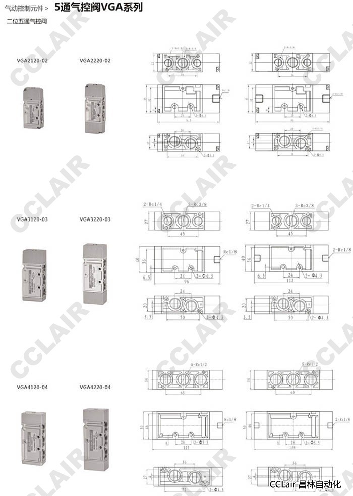 詳細信息 VGA3320-03,VGA3420-03,VGA3520-03,VGA4320-04,VGA4420-04,VGA4520-04,5通氣控閥