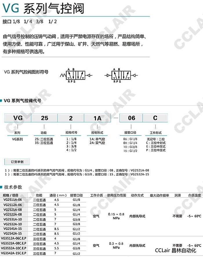 詳細(xì)信息 VG2521A-06,VG2511A-08,VG2511A-10,VG2521A-10,VG2542A-15,VG2511A-15,氣控閥