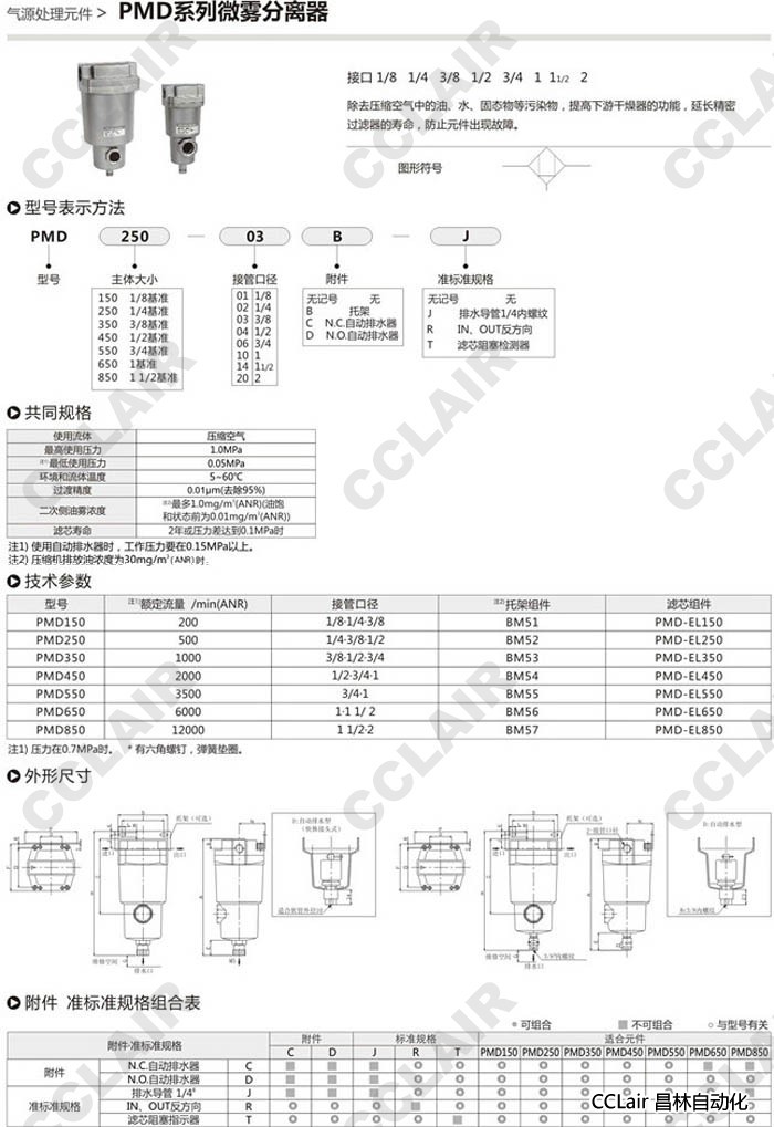 詳細信息 PMD150,PMD250,PMD350,PMD450,PMD550,PMD650,PMD850,微霧分離器