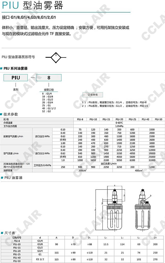 PIU-8,PIU-10,PIU-15,PIU-20,PIU-25,PIU-40,PIU-52,油霧器