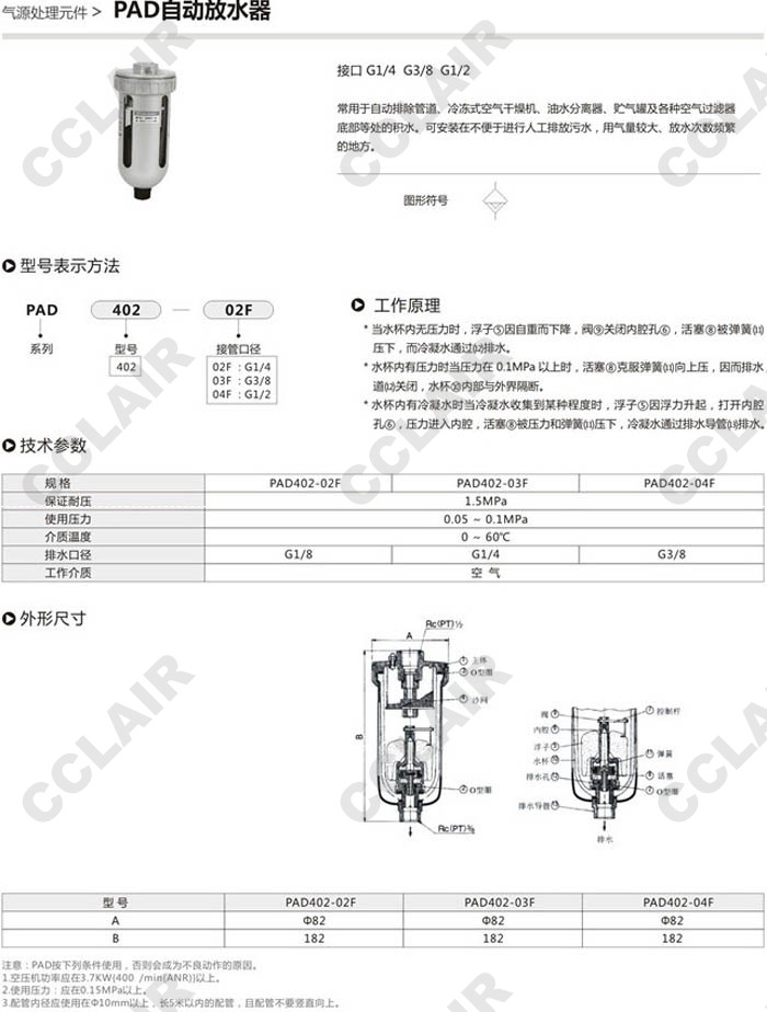 詳細(xì)信息 PAD402-02F,PAD402-03F,PAD402-04F,自動放水器