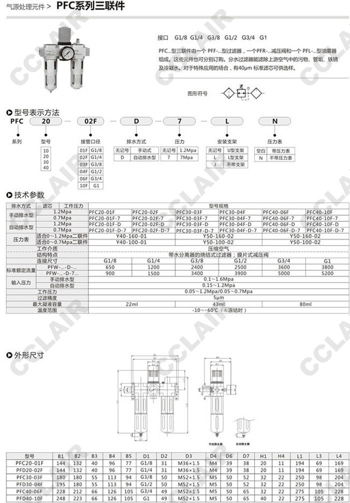 PFC20-01F,PFC20-02F,PFC20-03F,PFC20-04F,PFC20-06F,PFC20-10F,氣動(dòng)三聯(lián)件