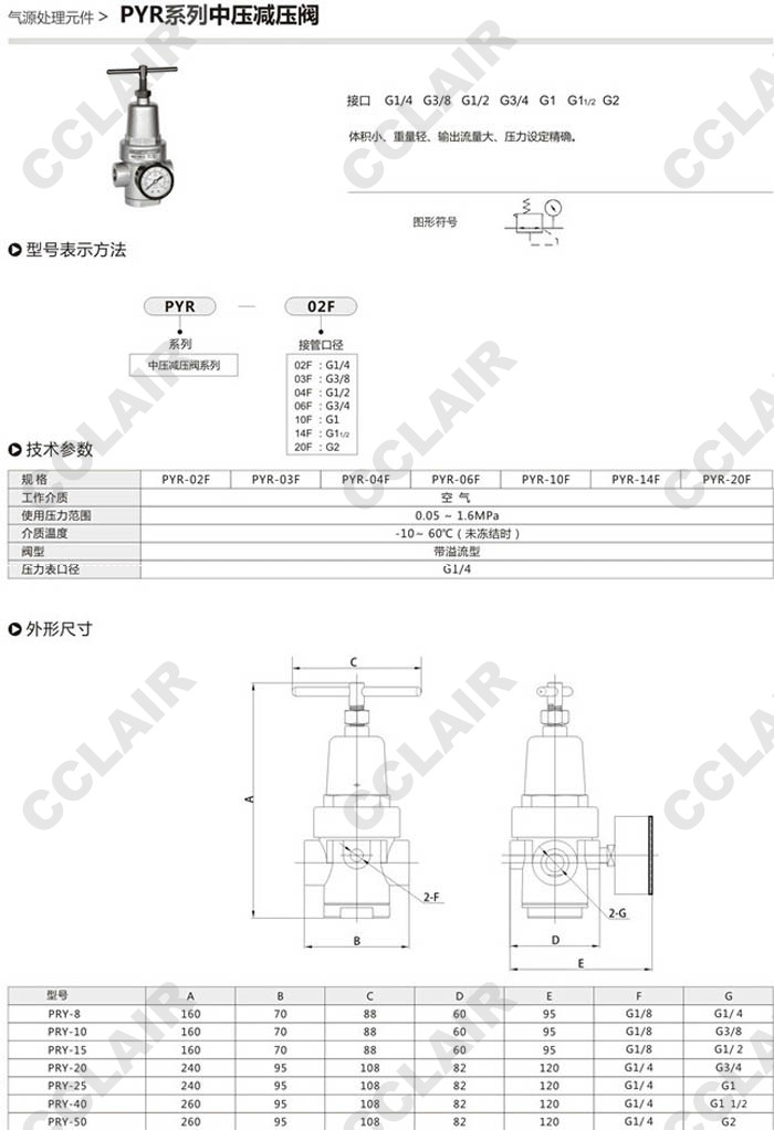 PYR-02F,PYR-03F,PYR-04F,PYR-06F,PYR-10F,PYR-14F,PYR-20F,氣動(dòng)中壓減壓閥