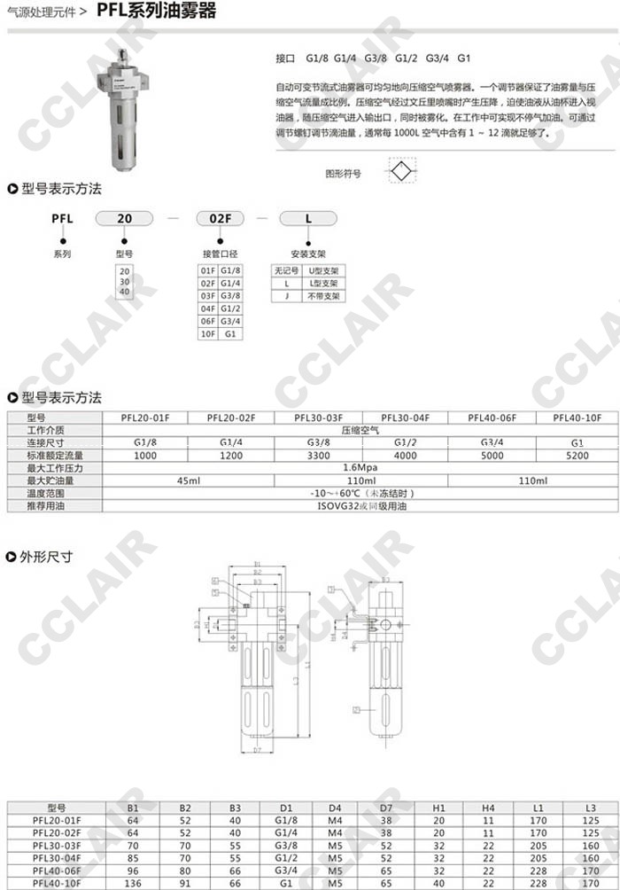 詳細信息 PFL40-01F,PFL40-02F,PFL40-03F,PFL40-04F,PFL40-06F,PFL40-10F,氣動油霧器