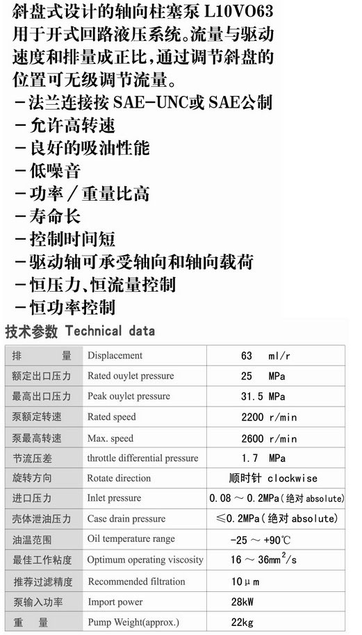 詳細(xì)信息 L10VO63,變量柱塞泵