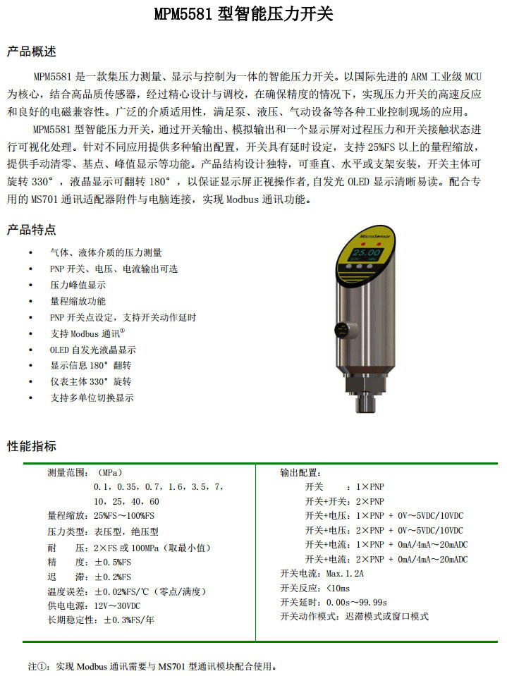 您當(dāng)前的位置:首頁(yè) » 產(chǎn)品&解決方案 » MPM5581-G1,MPM5581-G2,MPM5581-G3,MPM5581-A1,MPM5581-A2,智能壓力開(kāi)關(guān)