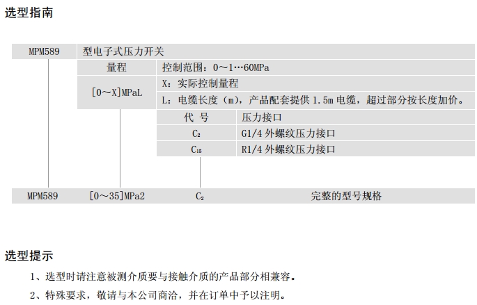 詳細信息 MPM589-0,MPM589-1,MPM589-60,電子式壓力開關
