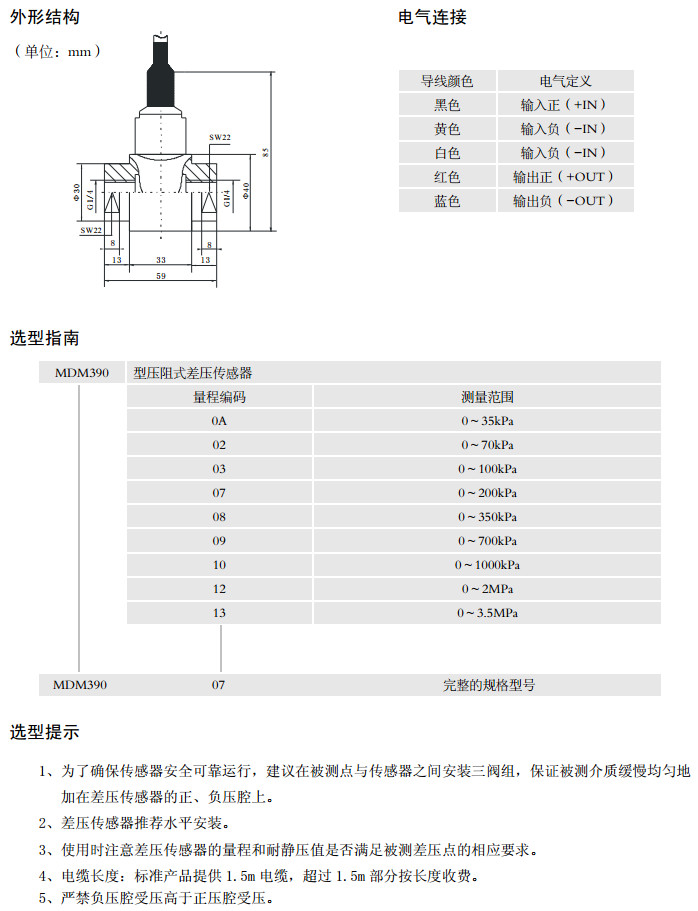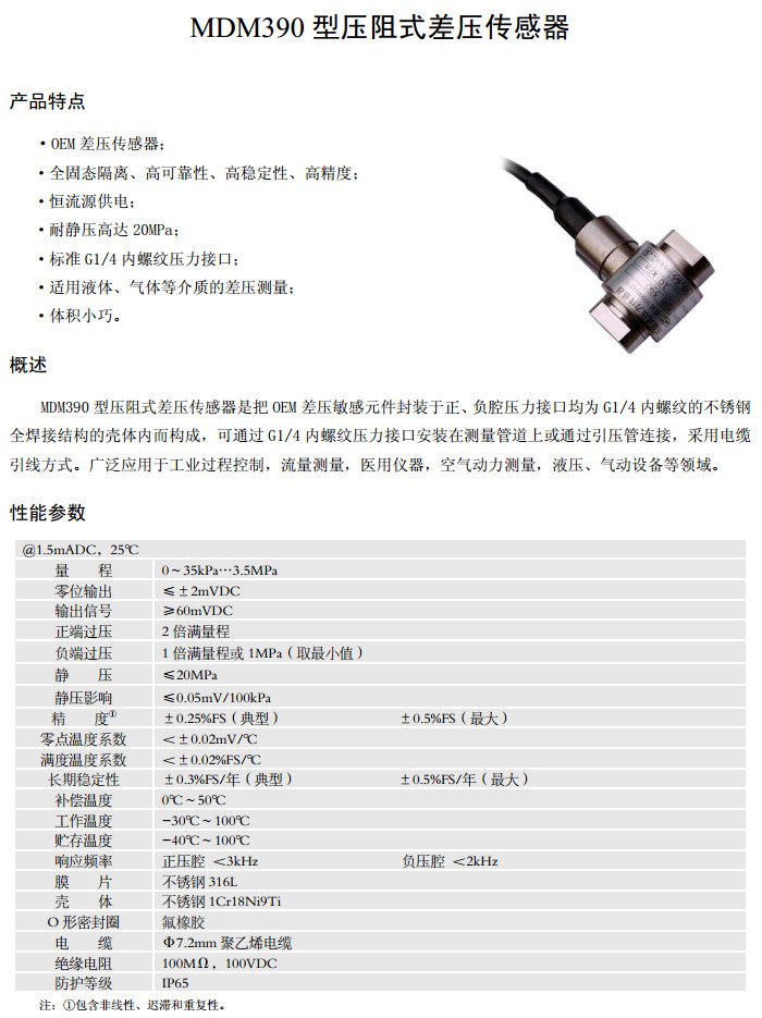 MDM390-OA,MDM390-02,MDM390-03,MDM390-07,MDM390-08,MDM390-09,MDM390-10,壓阻式差壓傳感器