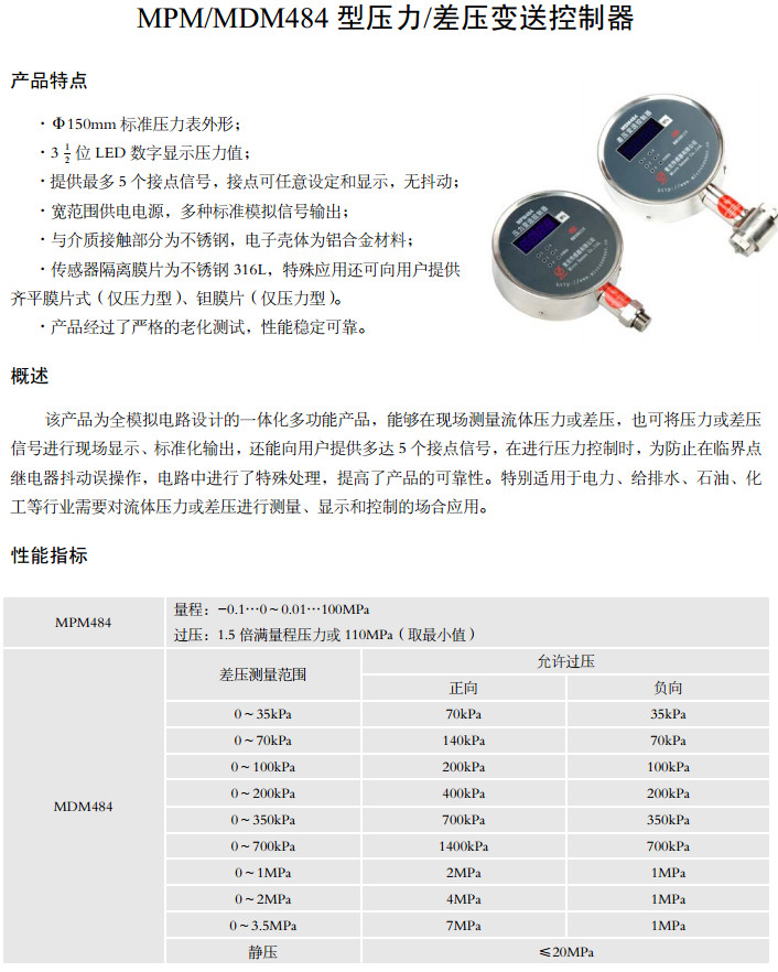 詳細(xì)信息 MPM484,MDM484,變送控制器