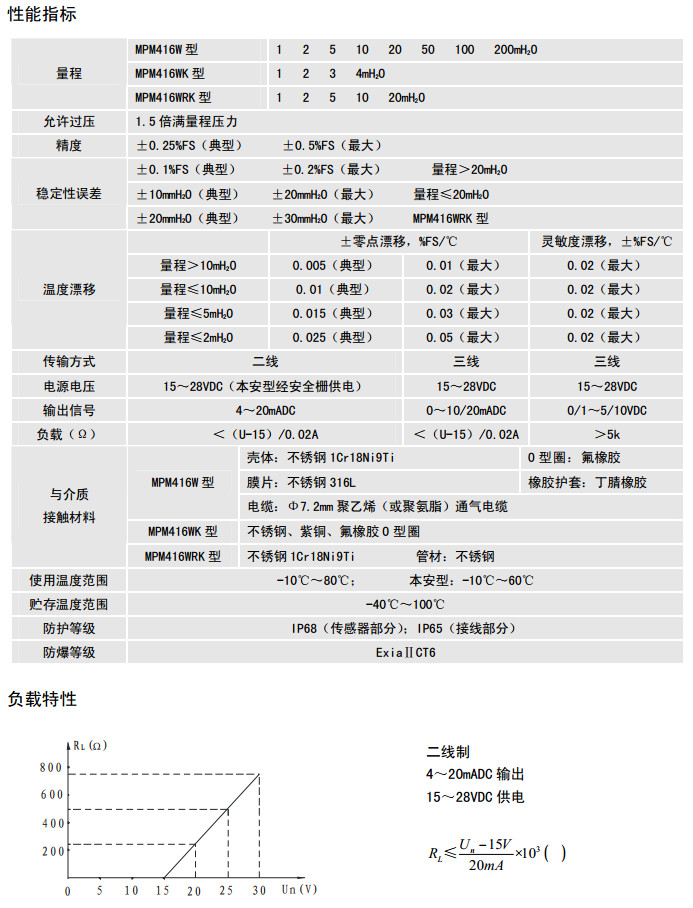 詳細信息 MPM416W-1,MPM416W-2,MPM416WK-1,MPM416WK-2,MPM416WRK-5,液位變送器