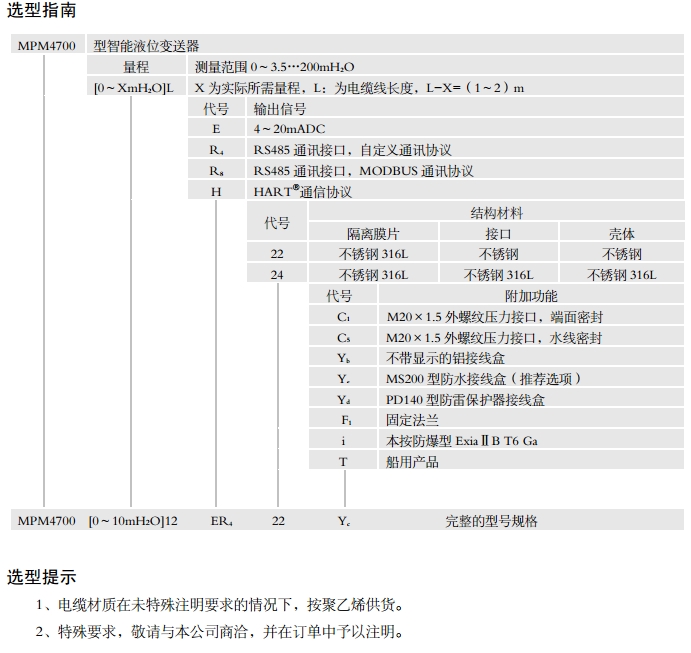 MPM4700-3.5,MPM4700-7,MPM4700-10,MPM4700-20,MPM4700-35,MPM4700-70,智能液位變送器