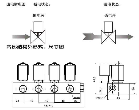 環(huán)境溫度:0~65℃按閥上所標流向箭頭,一進多路出(N)
