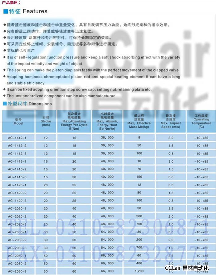 詳細(xì)信息 AC-1412-1,AC-1412-2,AC-1412-3,AC-14163-1,AC-1416-2,AC-1416-3,油壓緩沖器