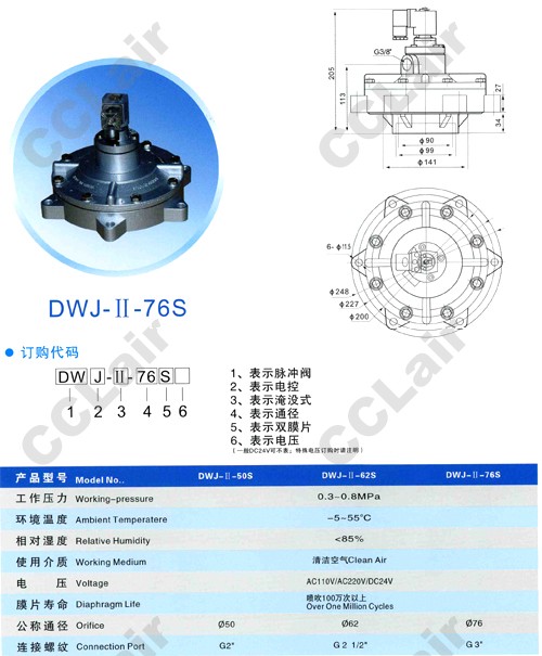 詳細(xì)信息 DWJ-II-76S,淹沒式電磁脈沖閥,無錫昌林