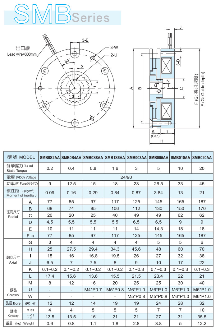 SMB0S2AA,SMB0S4AA,SMB0S8AA,SMB1S6AA,SMB003AA,SMB005AA,SMB010AA,SMB020AA,電磁式安全剎車器