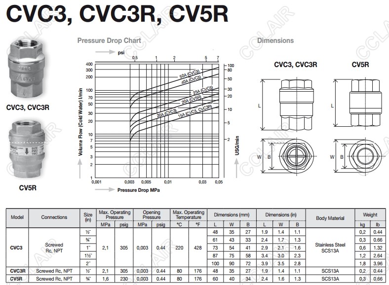 詳細信息 CVC3,CVC3R,CV5R,miyawaki止回閥