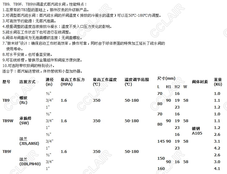 詳細(xì)信息 TB9,TB9F,TB9W,miyawaki調(diào)溫型蒸汽疏水閥