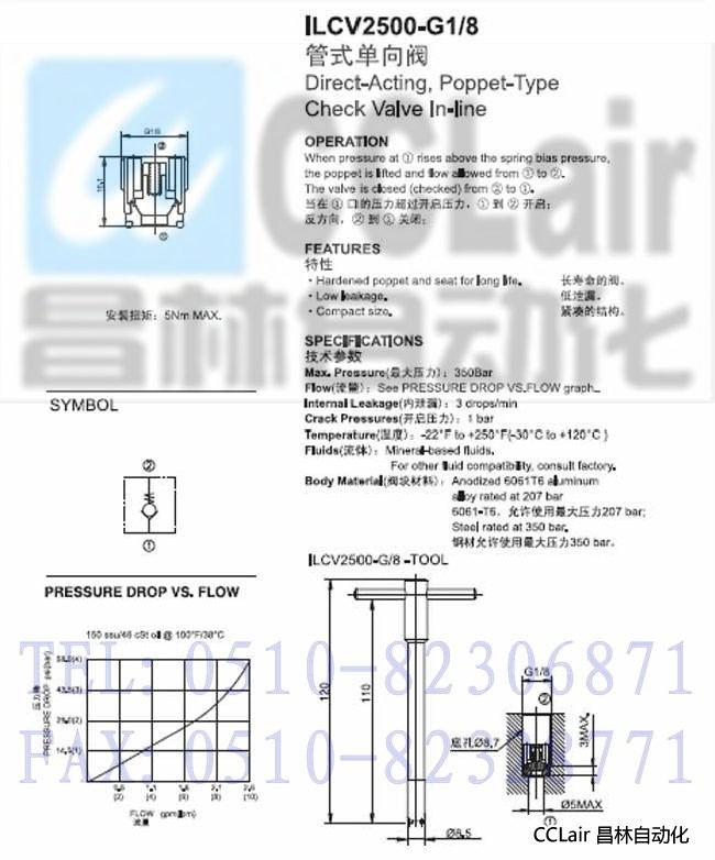詳細信息 ILCV2500-G1/8,管式單向閥,生產(chǎn)廠家,價格