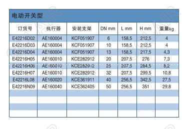 詳細信息 E42216D02,E42216D03,E42216H06,E42216H07,E42216L08,E42216N09,422型電動開關球閥OMAL