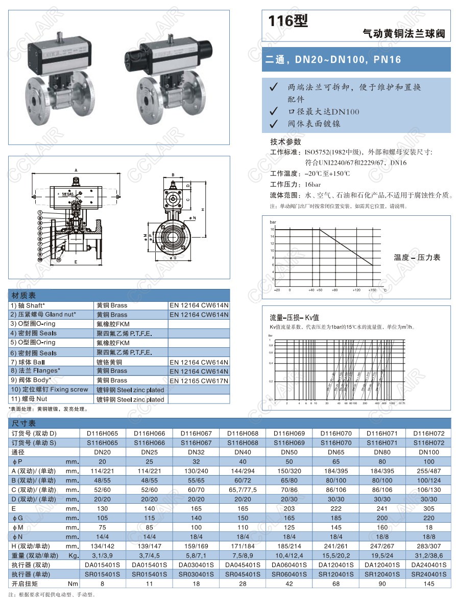 D116H065,D116H066,D116H067,S116H069,S116H070,S116H071,S116H072,116型氣動(dòng)黃銅法蘭球閥OMAL