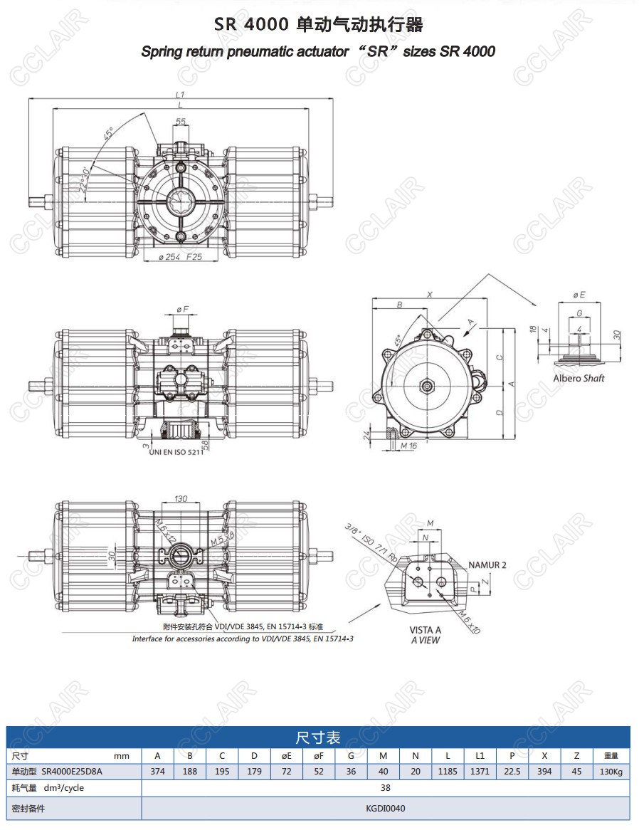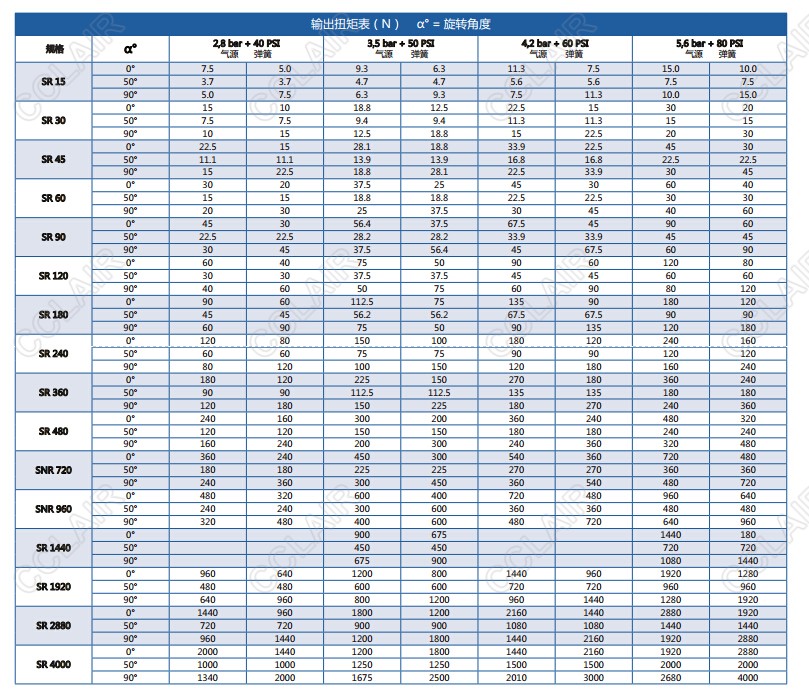 字母DA或SR后的數(shù)字代碼表示在5.6bar氣源壓力下的扭矩。