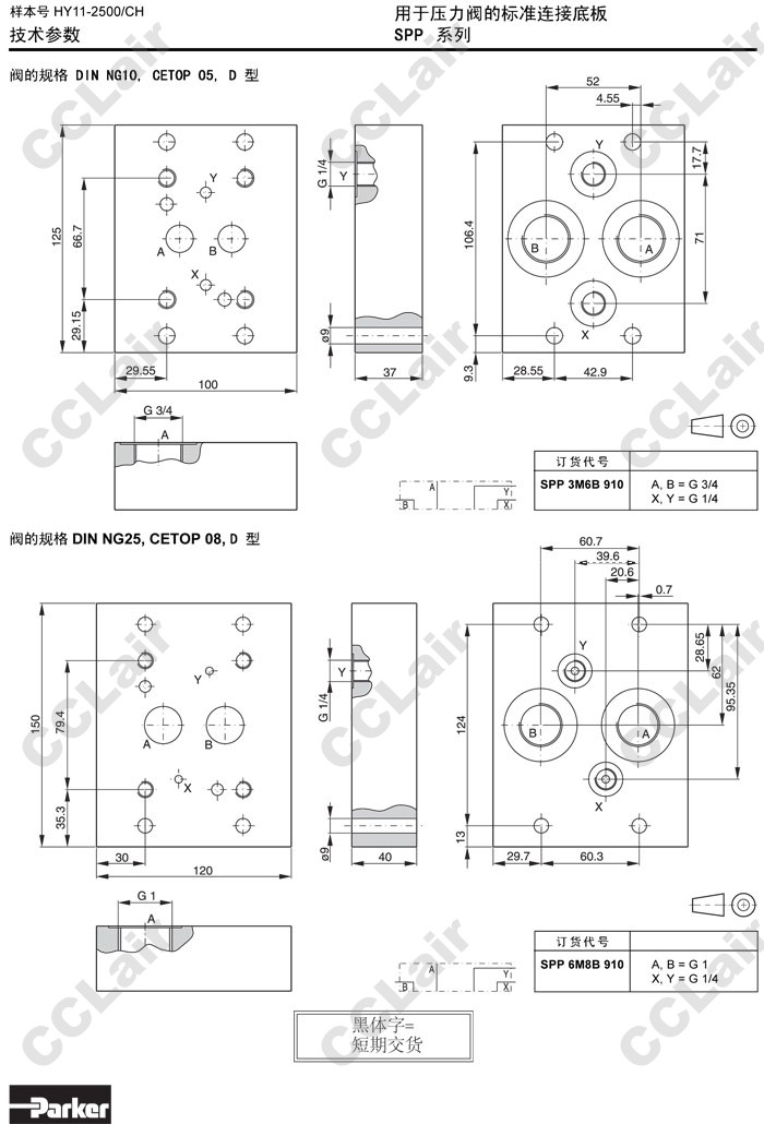 詳細信息 SPP3M6B910,SPP6M8B910,Parker標準連接底板