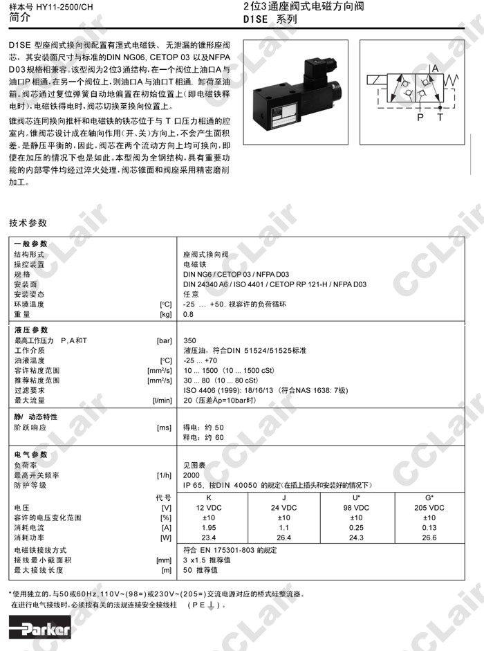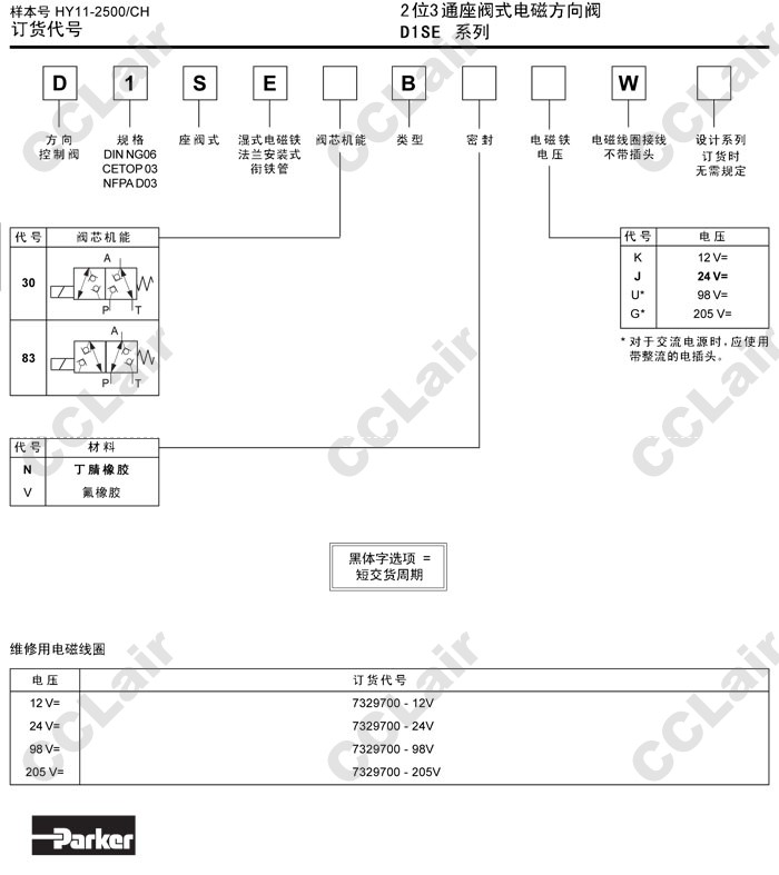 詳細(xì)信息 D1SE30BNKW,D1SE30BVKW,D1SE83BNKW,D1SE83BVKW,D1SE30BNKJ,D1SE83BNKJ,Parker2位3通式電磁方向閥